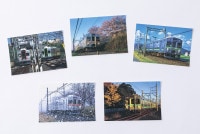 被写体は全て7700系車両で、四季(春夏秋冬)の写真各1枚と東方操車場での2編成並び写真1枚の合計5枚をセットにしました。